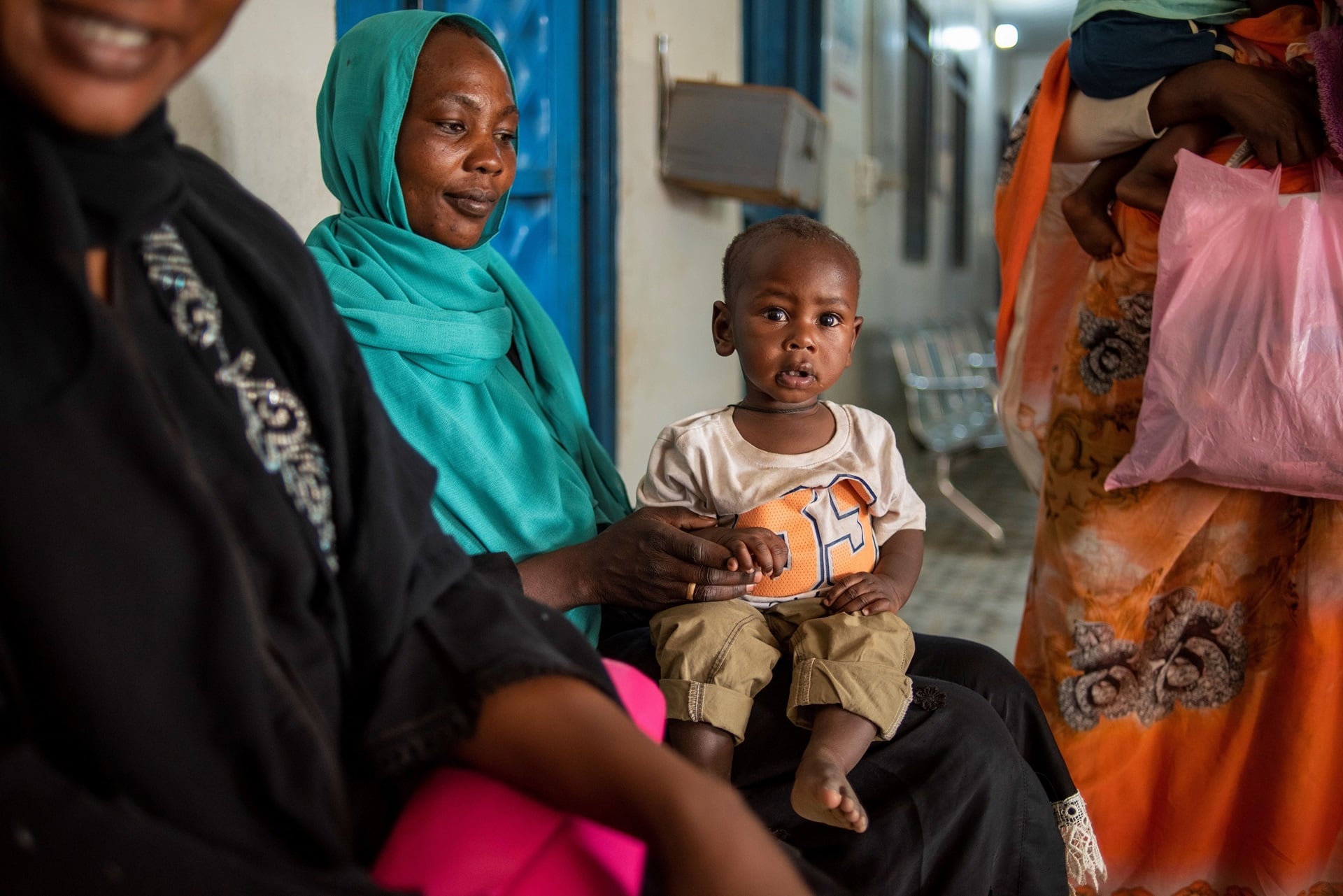 Mother and son in North Darfur for a check-up at a health facility.